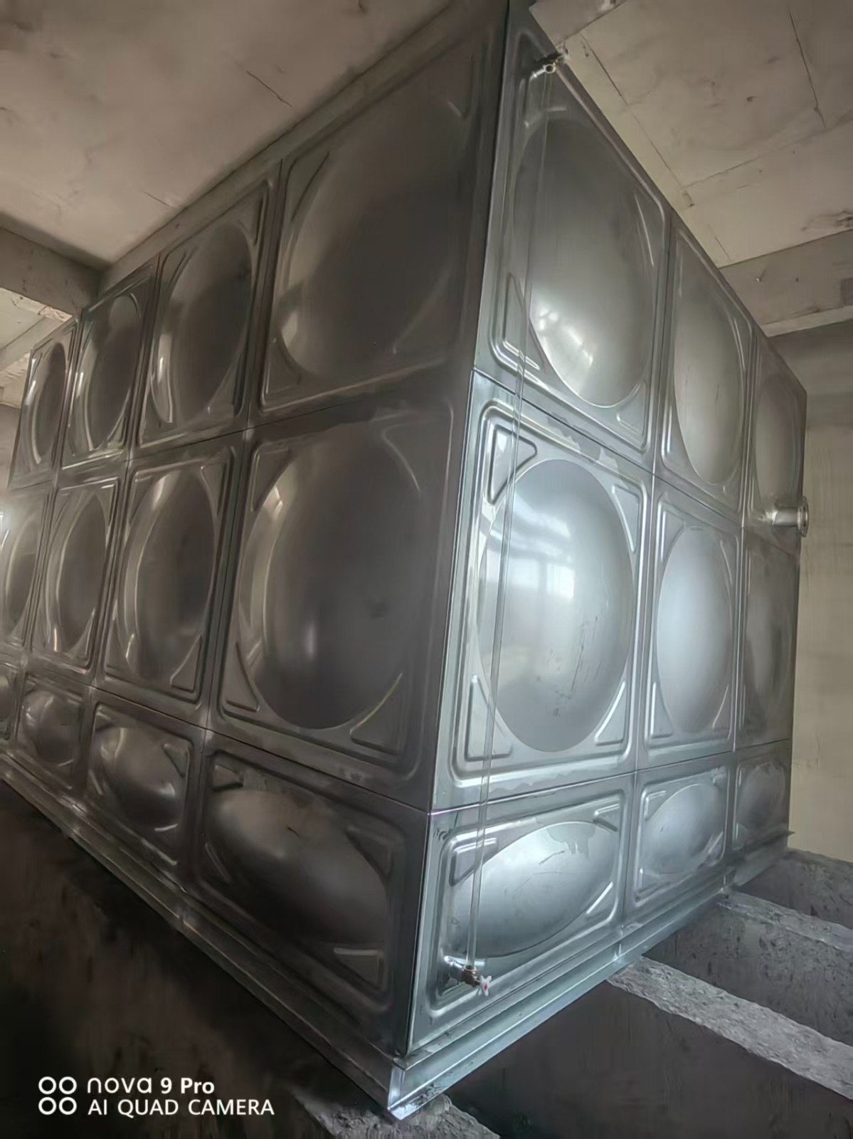 不锈钢的水箱原材料不同,含镍量不同,防腐性能也不同,山东腾翔均采用 SUS304不锈钢板,精工模压成 1x1 米、1x0.5 米和 0.5x0.5 米的标准板块,可根据客户需求定制不同规格,散件发货,现场或厂内采用氩弧焊接组装,高强度的冲压板与水箱内部分布的不锈钢拉筋支撑承受压力均匀合理,满足了箱体坚固耐用的要求,适用于医院,宾馆,学校,居民楼及食品加工,医疗卫生等对水质要求加高的场所。